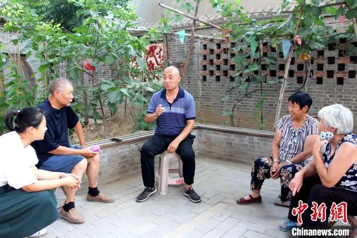 6月19日,在石家庄市藁城区常安镇耿村,耿村民间故事代表性传承人王发礼(中)给村民们讲故事。陶艺 摄