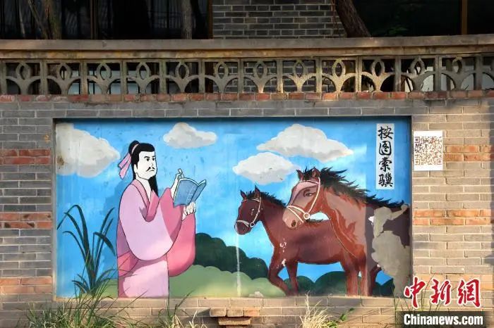 在耿村,贯穿村子东西方向的主干道被打造成“故事一条街”。入木三分、杞人忧天、三顾茅庐、按图索骥……两侧农舍砖墙上用图画呈现的传统故事、典故让人一路目不暇接,有的图画故事旁还附有专属二维码,使用手机扫码即可听故事。