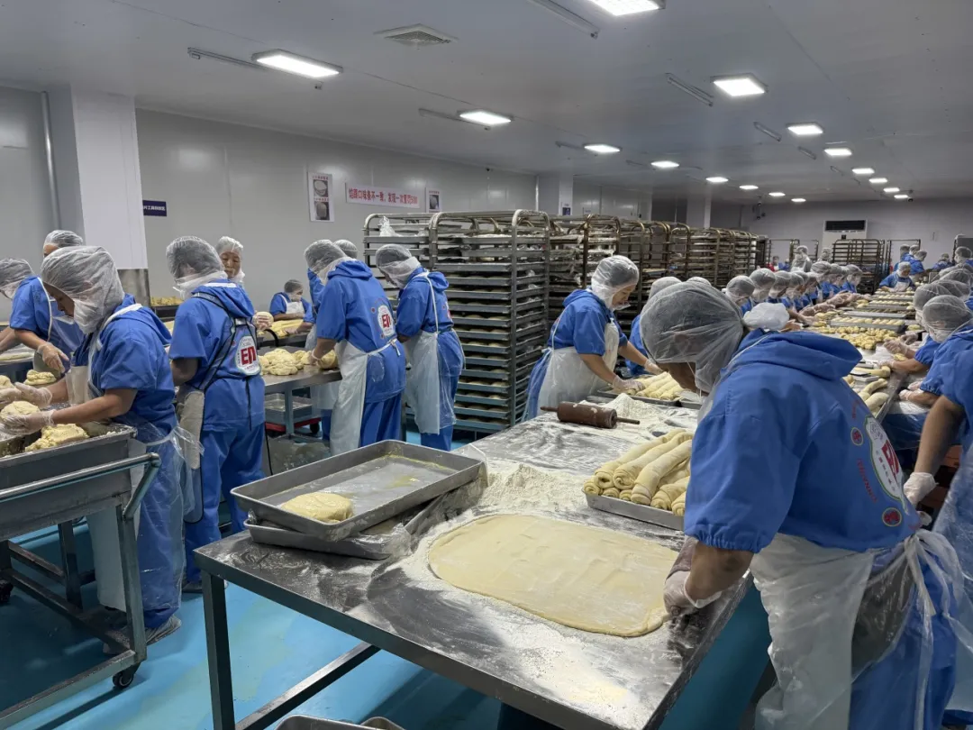 走进石家庄印奶奶食品有限公司的月饼生产车间,浓郁的香味扑面而来。车间内,备料、掐面团、称重、推酥、包馅、烘烤、包装等环节井然有序,员工在生产线上有条不紊地工作着,一派火热的生产景象。