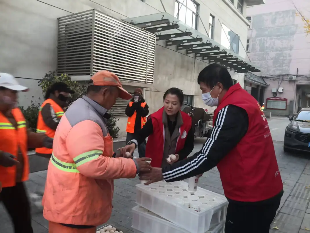 随着近期天气转冷,藁城区志愿服务联合会组织志愿服务队,开展暖冬行动,志愿者分工协作:清洗器具、研磨豆子、蒸煮鸡蛋等。天刚刚亮,志愿者便将煮好的豆浆和鸡蛋分装好,第一时间送到人民广场、工会门口、站南街等环卫工人相对集中的工作场所,对他们辛勤的付出表示感谢。