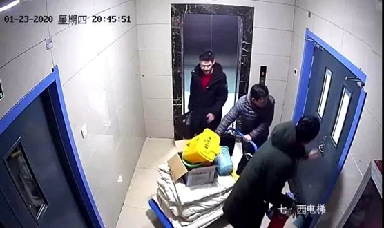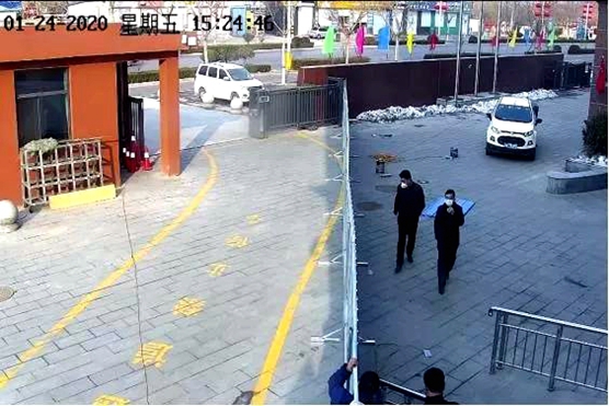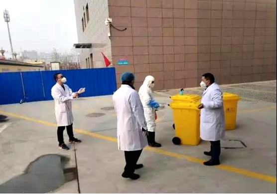 2020年1月28日,纪军辉主席、办公室苏亚锋,医务科张绍玉、后勤科张明、杜广、李中伟一行全副防护,清理留观区人员生活垃圾。在此过程中纪军辉主席身先士卒,冲在一线,甚至在扭伤腰后依然坚持指挥,提醒大家做好防护、做好消毒。
