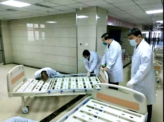 2020年1月23日晚,党支部书记剧清国组织院内党员干部连夜准备隔离病房及床位,在留观人员到达前完成了一切准备工作。