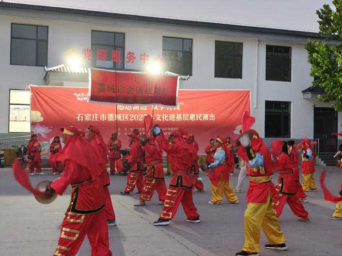演出在藁城区金箔战鼓的激昂节奏中拉开帷幕,常安镇黄家庄战鼓方队以雄浑鼓点、整齐动作,瞬间点燃现场氛围,展现藁城战鼓这一传统艺术的独特魅力,传递奋进力量,随后,常安镇黄家庄女子战鼓队舞蹈班带来舞蹈《情歌轻轻唱》,队员们用灵动舞姿,将柔美与活力融合,展现乡村女性风采,耿村故事讲述环节,国家级非物质文化遗产传承人王发礼讲述《张飞为什么是花花脸》,区级非遗传人靳春利带来《拜寿》 ,两位传承人以生动讲述、精湛技艺,让承载历史与民俗的耿村故事活起来,传承文化根脉,此外还有舞蹈、戏曲、歌曲等精彩演出。