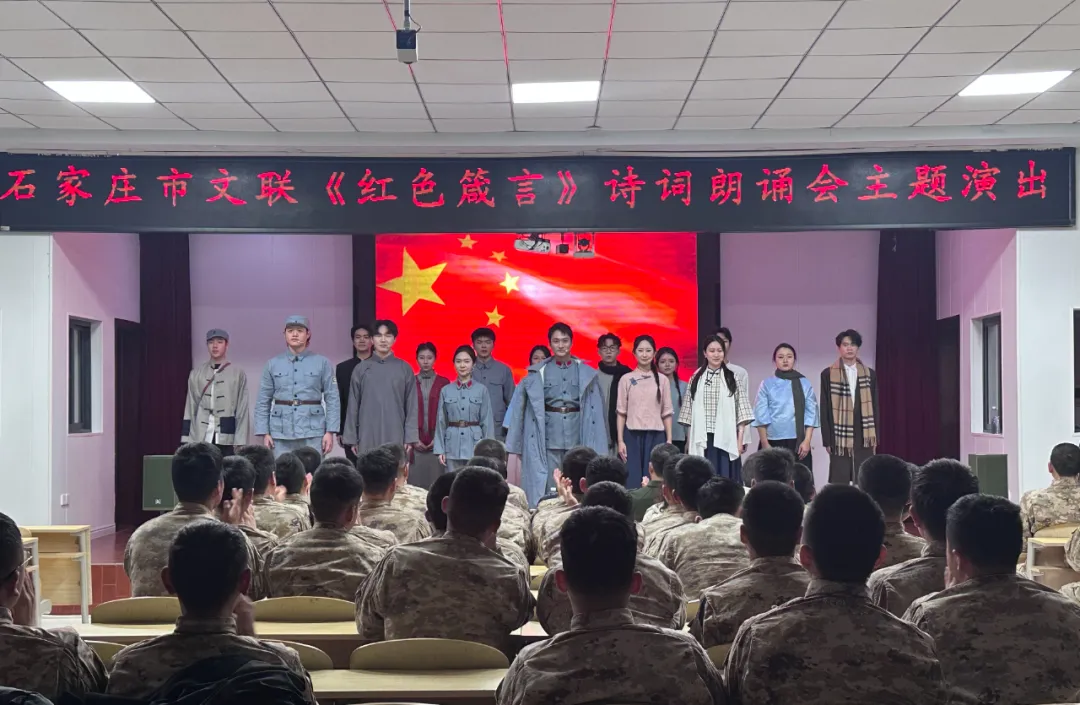 为传承红色文化、弘扬革命精神,近日,藁城区文联、区退役军人事务局邀请石家庄市文联编排的《红色箴言》诗词朗诵会走进驻藁部队。