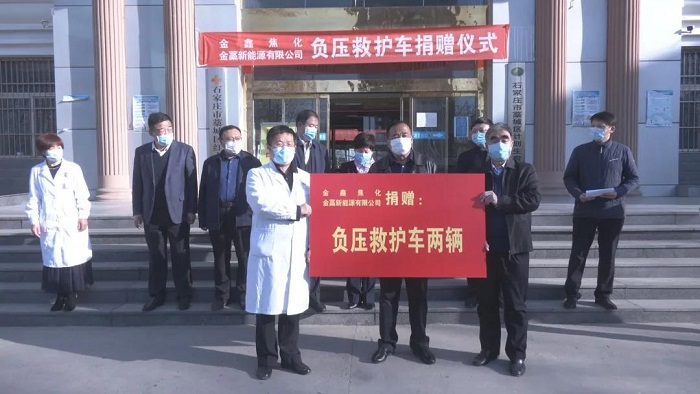 3月18日上午,金鑫焦化有限公司和金藁新能源有限公司向我区防疫办捐赠两辆负压救护车,价值110余万元。捐赠仪式在我区防疫办举行,副区长孟翠珍、卫健局局长李雪岭、宣传部副部长、融媒体中心主任李文凯、工信局局长张宁和藁城区人民医院、中西医结合医院有关负责人参加捐赠仪式。