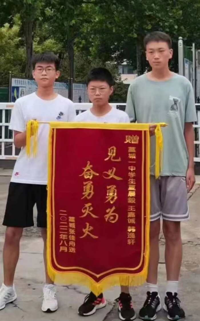 主要事迹:7月31日傍晚,夏晨毅、王嘉诚、韩逸轩三人约好到外面一起打篮球,从藁城区的北尚庄小区路过时,发现北尚庄小区的一栋高层的八楼起火,他们三人一同进入小区找到门卫人员,带着灭火器直奔八楼。根据消防常识他们没有坐电梯,拿着灭火器爬楼梯来到八楼,当时烟已经很浓,八楼的楼道都充满了烟,他们拿起灭火器,根据在学校学到的使用方法,对准火源进行灭火,最终用了八个灭火器才将火源基本控制,消防员赶到后,大家一起努力将火情彻底扑灭,为保护群众生命财产安全争取了宝贵时间。