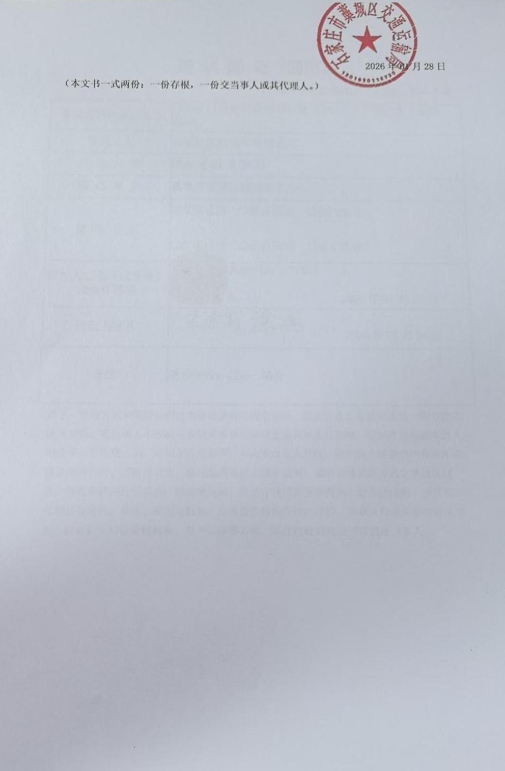 藁城区交通运输局行政处罚公示冀0109交罚不罚决字〔2026〕33号