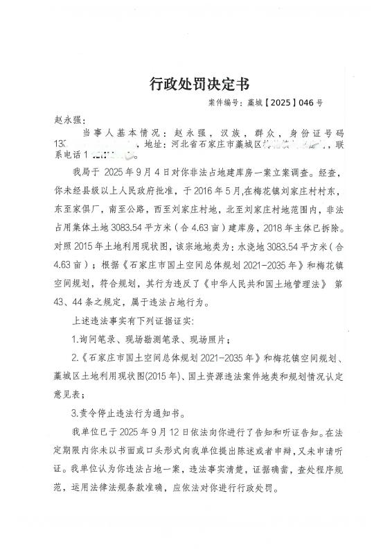 行政处罚决定书-藁城[2025]046号