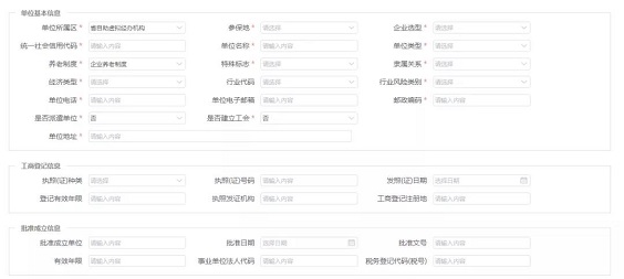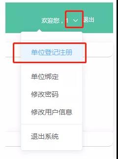 第三步:单位登记注册。登陆进系统之后,请点击右上角下拉菜单的“单位登记注册”,填写单位信息(*号项为必填项)。