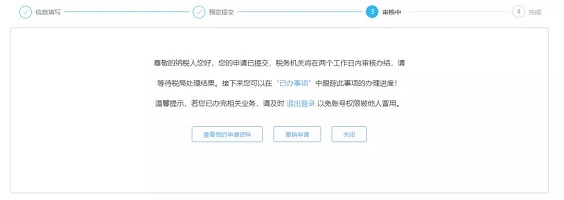 第五步:提交成功,税务机关将在两个工作日内审核办结。