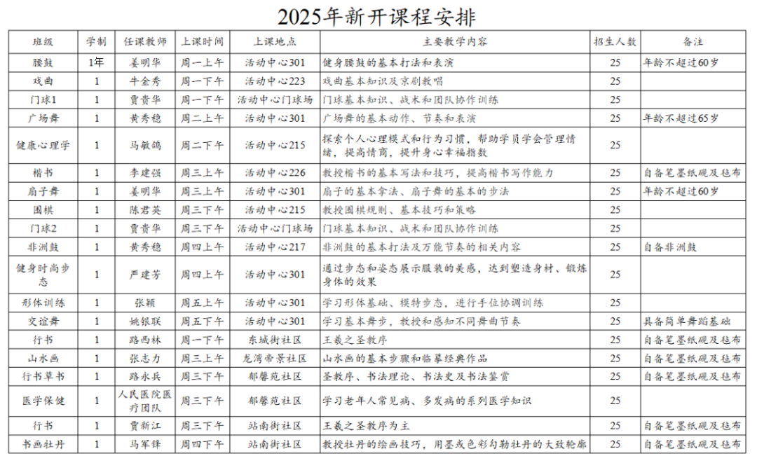 藁城区老年大学创办于1988年,是藁城区委、区政府关心支持下兴建的公办老年大学,隶属中共石家庄市藁城区委员会组织部,面向全区广大离退休老干部、老同志开放。学校现开设文史语言、健康心理、书法、美术、舞蹈、音乐、体育健身、医学保健等专业课程,聘请公益教师30余名。2025年招生工作已开始,我校计划招收19个班,475人。具体安排如下: