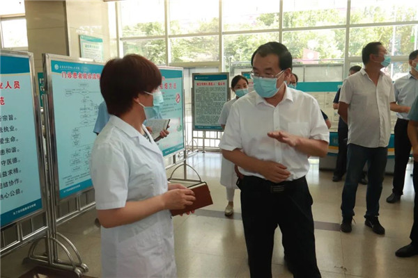 在人民医院,王锦山详细了解院感防控和发热病人管理情况,要求医院要定期开展院感风险督导检查和院内自查,发现问题立即整改,坚决避免院感事件发生。