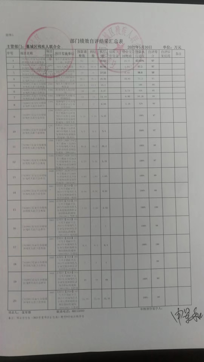 藁城区残联部门绩效自评结果汇总表