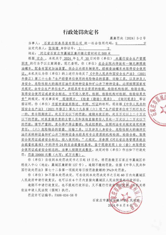石家庄恒泰吊装有限公司未履行安全生产管理职责案