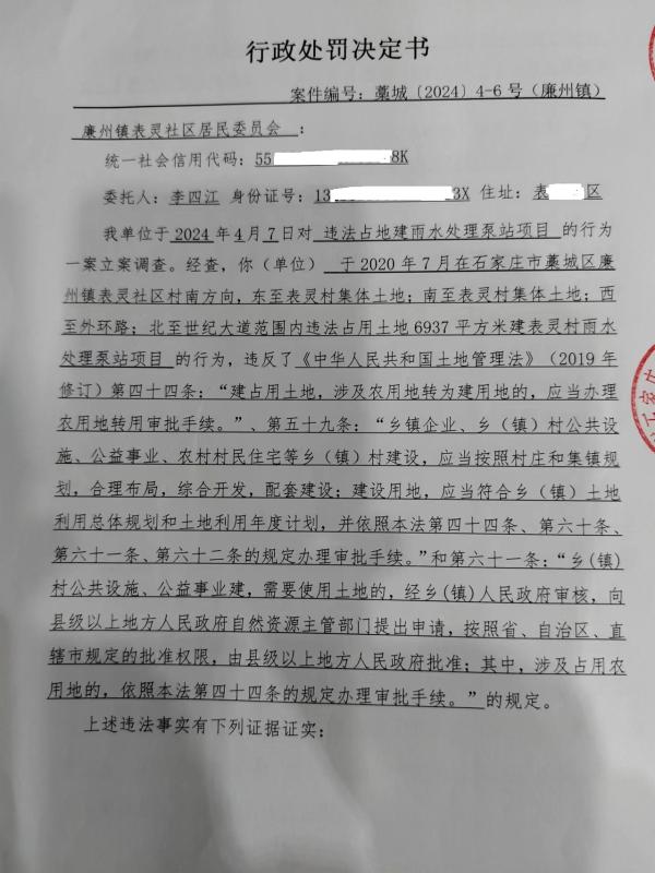 表灵社区居民委员会未经批准违法占地建雨水处理泵项目案