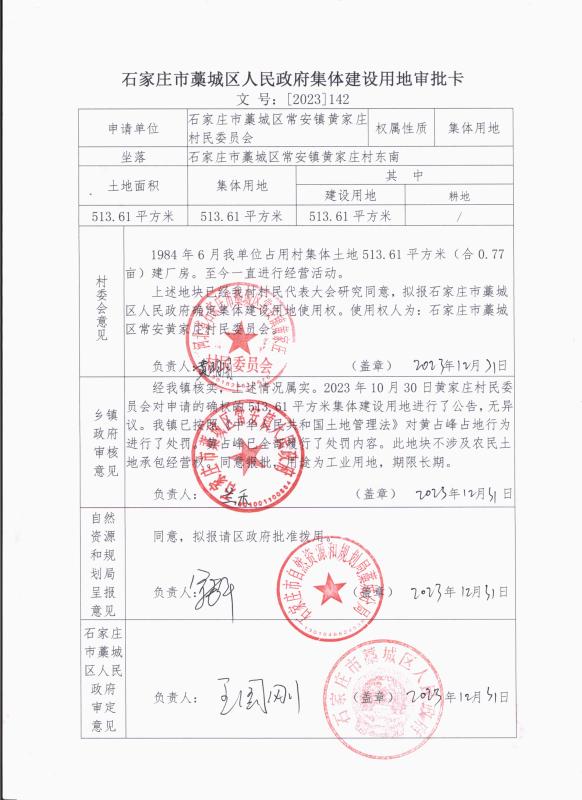 石家庄市藁城区常安镇黄家庄村集体建设用地使用权拟登记公告