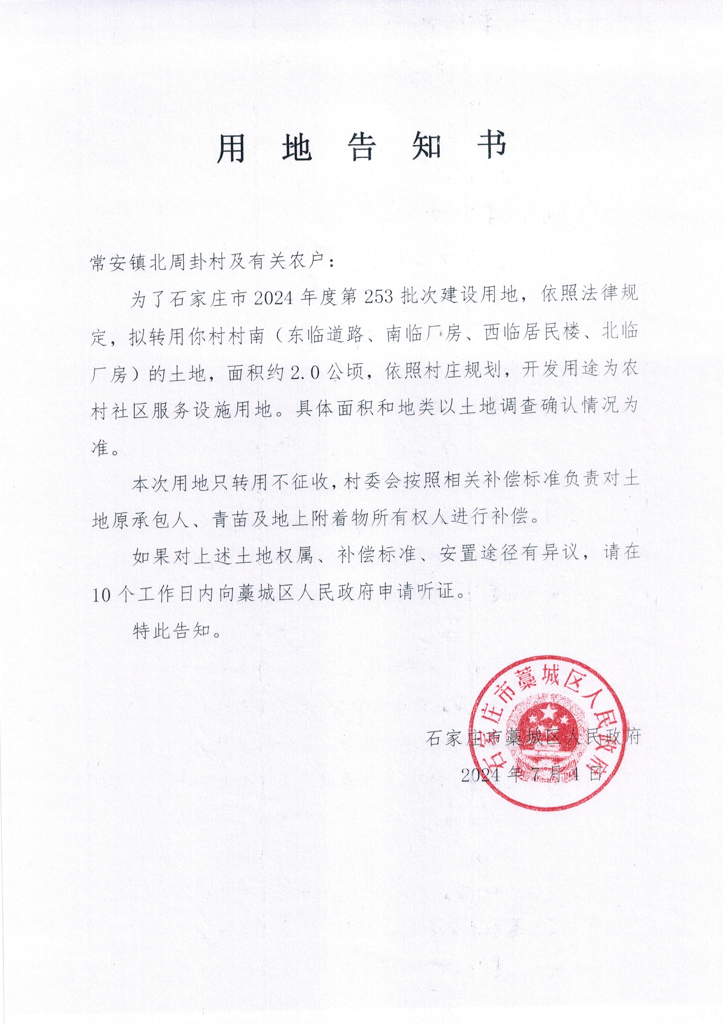 常安镇北周卦村用地告知书