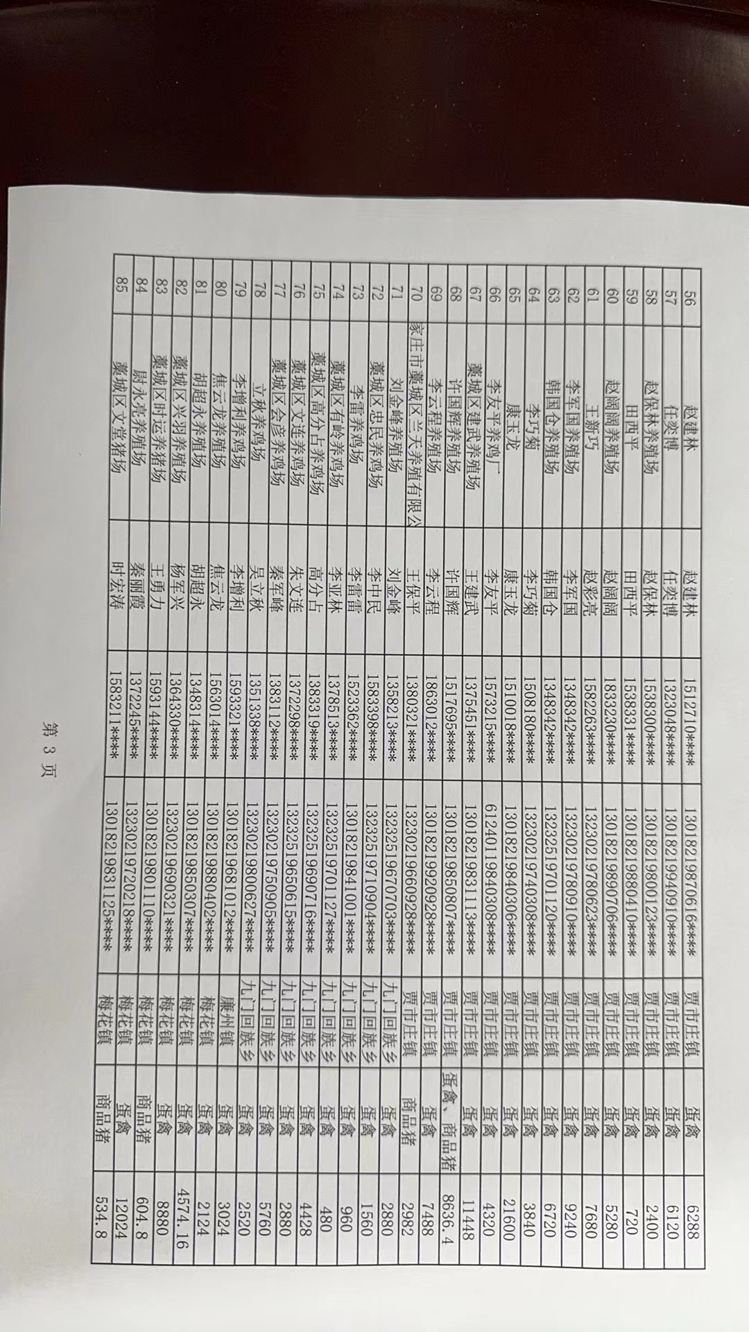 根据有关规定,藁城区农业农村局对上报符合条件申请先打后补养殖场户进行了初审和终审。最终验收审核通过养鸡场户182家、养猪场5家(其中许国辉养殖场分别申请鸡和猪的免疫补助),共计186家,涉及补助金额1208530.92元。现将2024年藁城区强制免疫先打后补养殖场户补助情况名单(详见附件)进行公示。公示期2024年8月6-12日(7天),公示期如有异议,可拨打举报电话:0311-88114125。公示无异议后即可拨付全部资金。