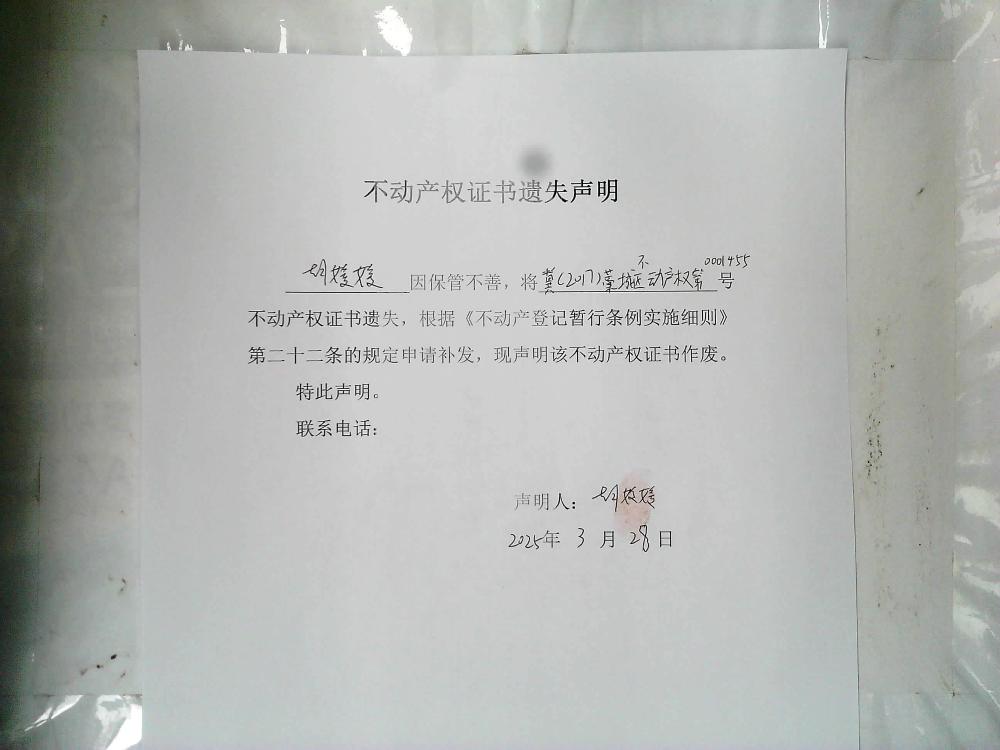 胡媛媛不动产权证书遗失声明