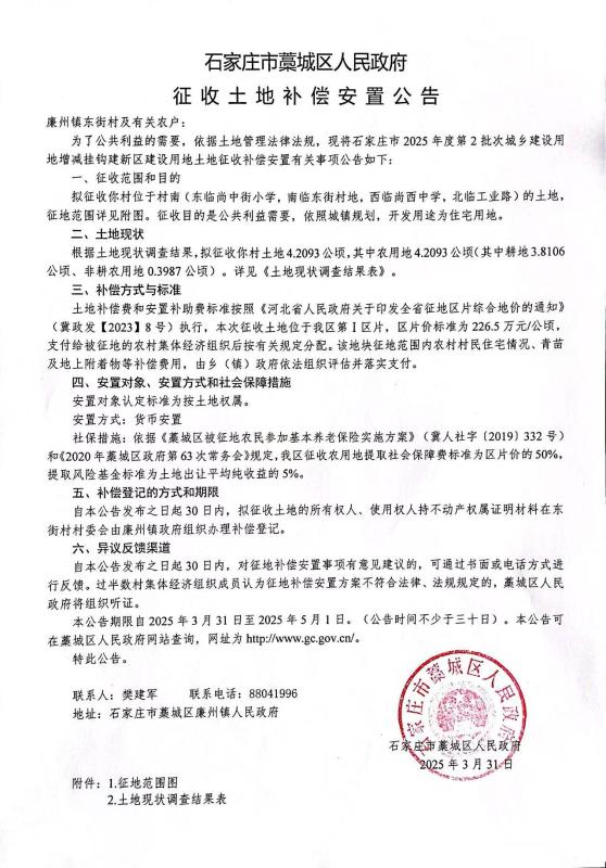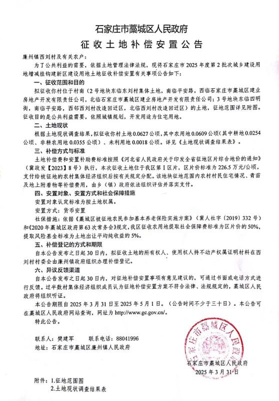 石家庄市2025年度第2批次征收土地补偿安置公告