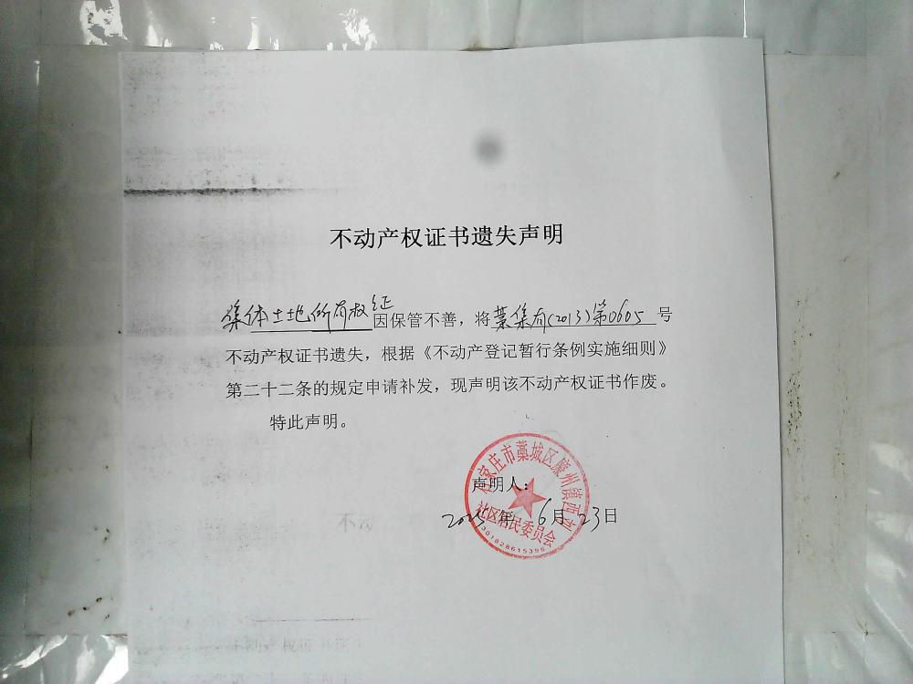 藁城区廉州镇西刘村农民集体不动产权证书遗失声明