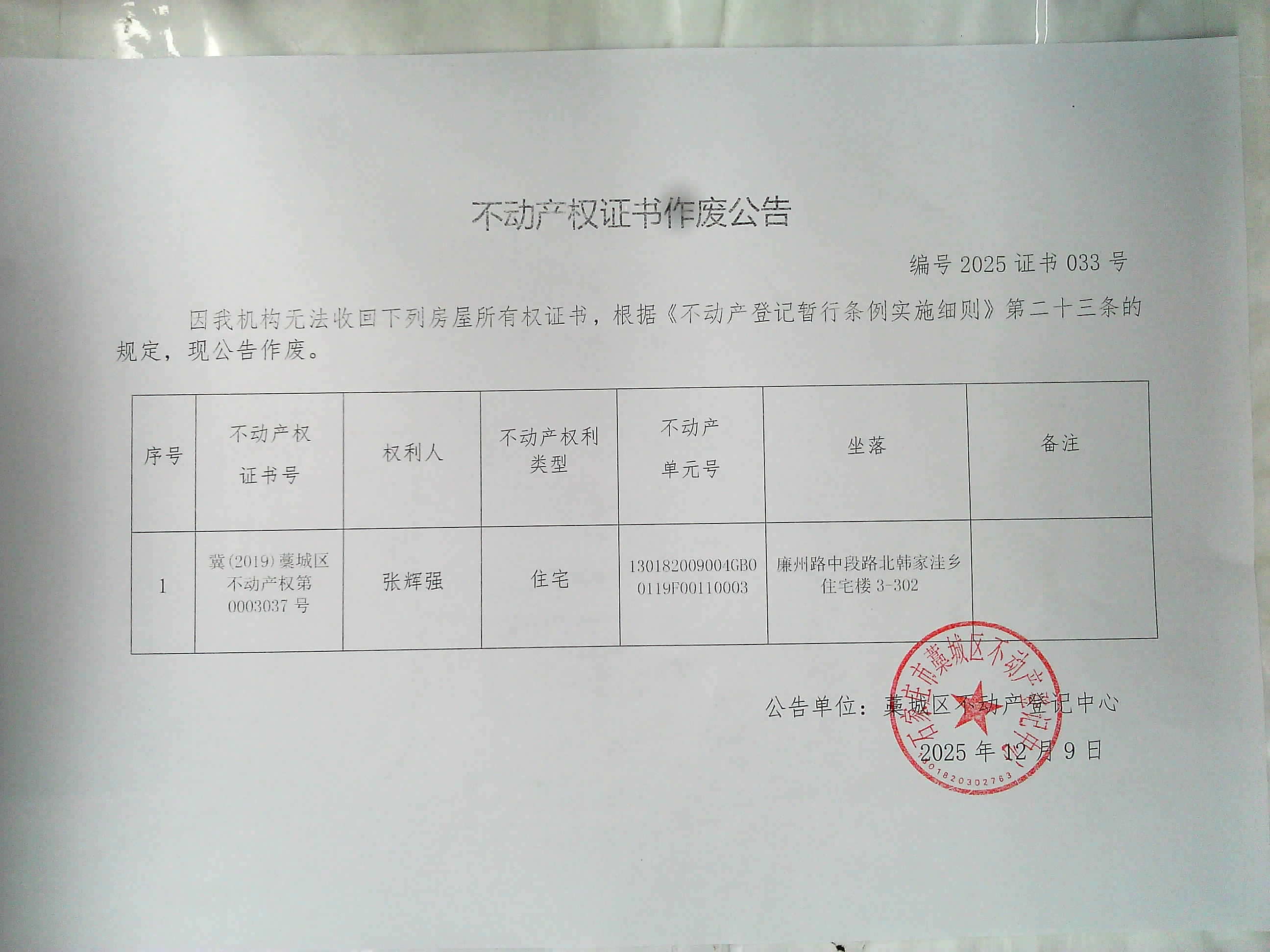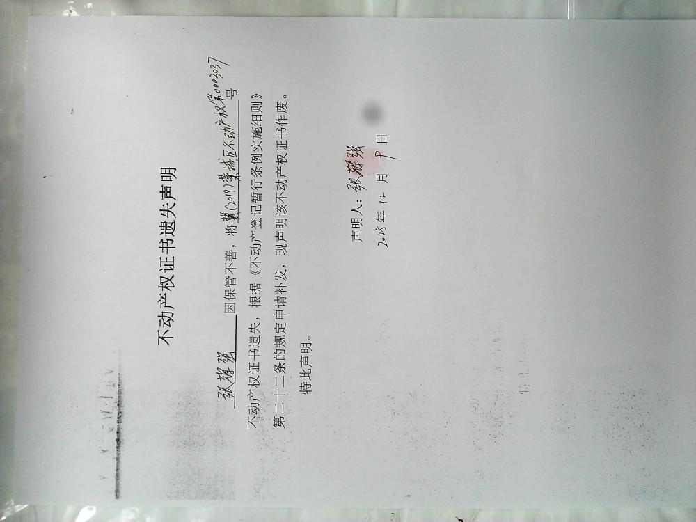 张辉强不动产遗失声明及作废公告