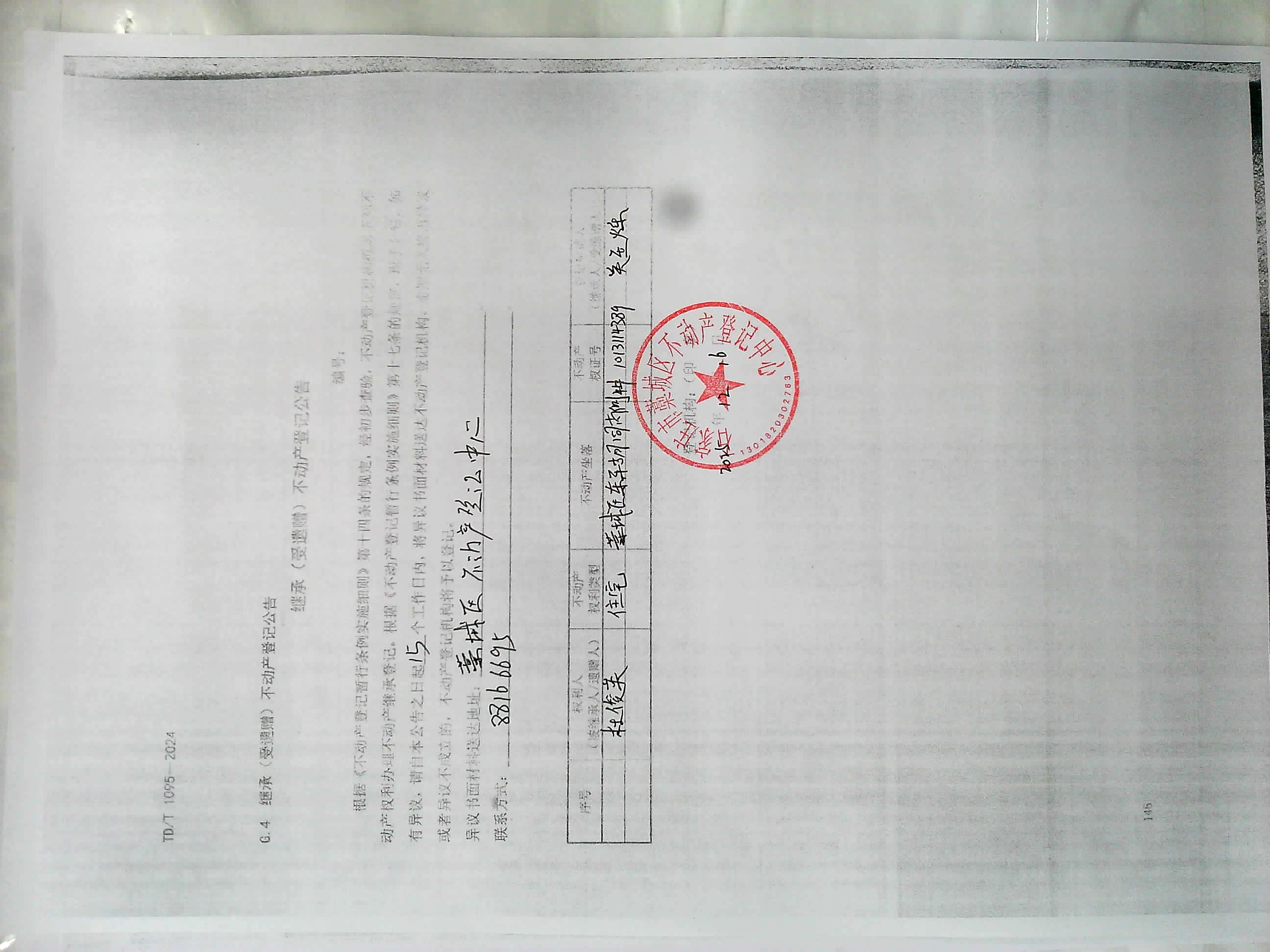 关玉烁继承不动产登记公告