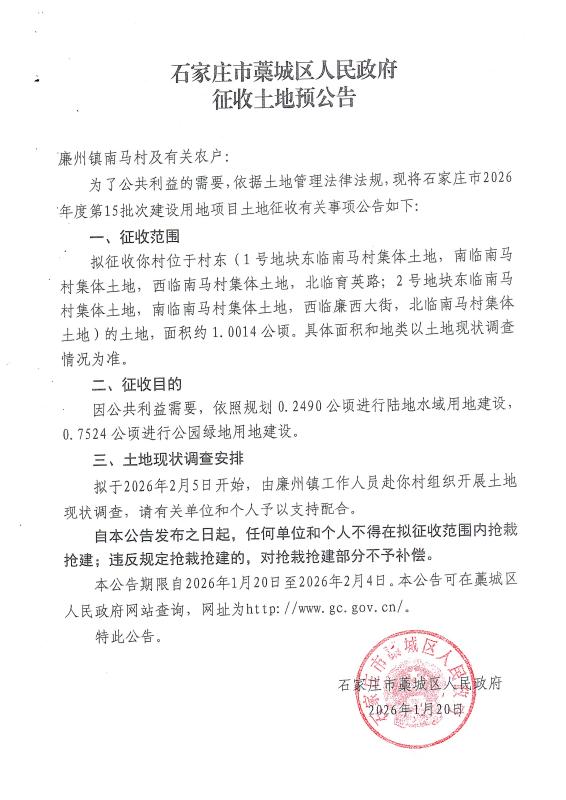 石家庄市2026年度第15批次征收土地预公告