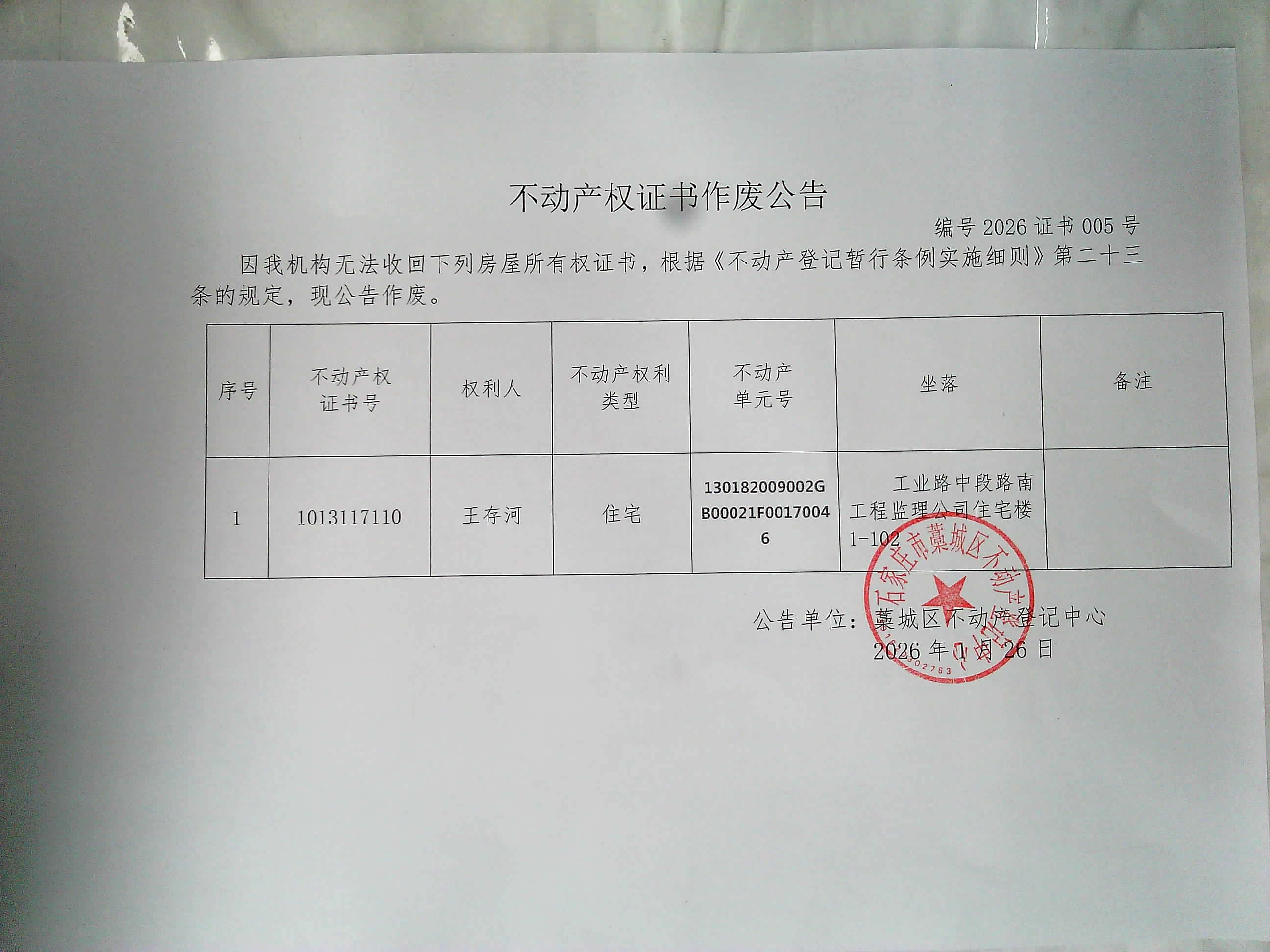 不动产权证书作废公告