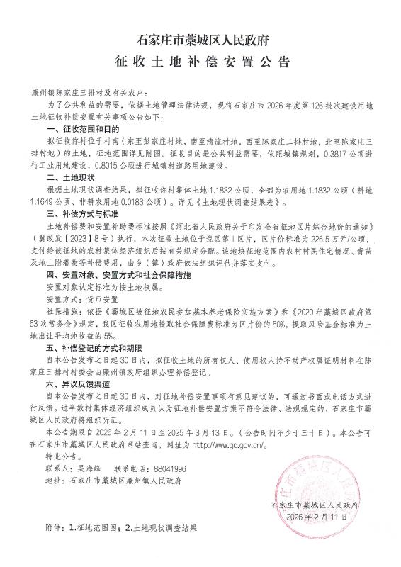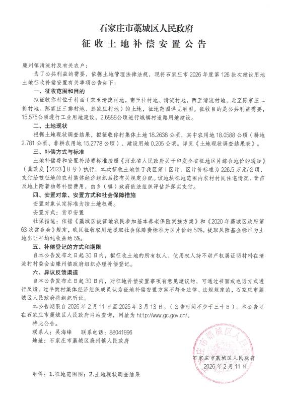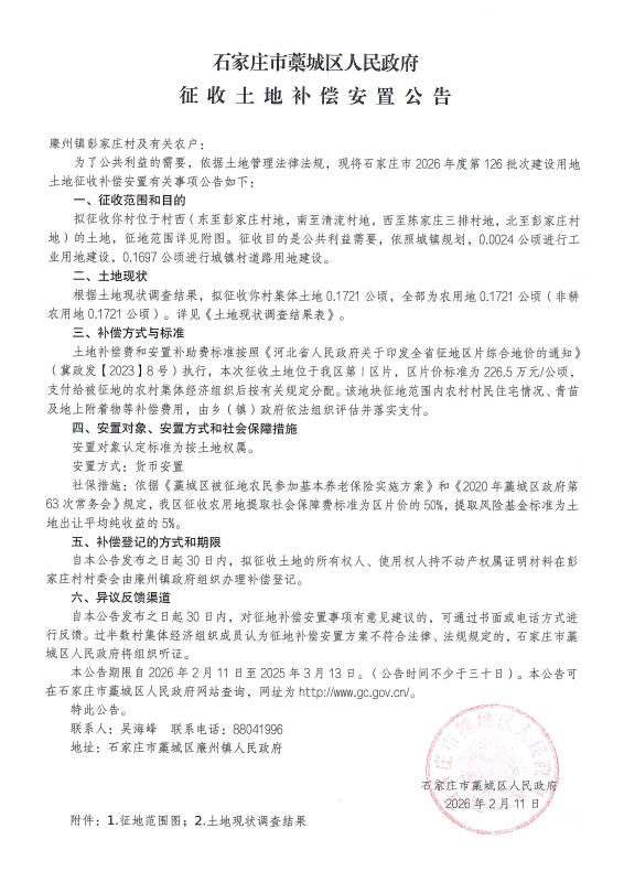 石家庄市2026年度第126批次征收土地补偿安置公告