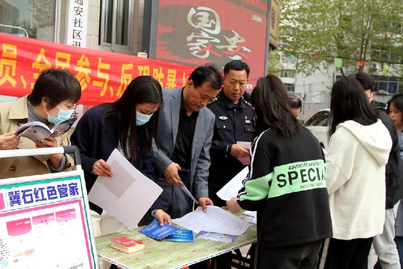 石家庄市公安局藁城分局组织政保大队、出入境管理大队等部门开展以“贯彻总体国家安全观,增强全民国家安全意识和素养,夯实以新安全格局保障新发展格局的社会基础”为主题的全民国家安全教育进社区宣传活动。