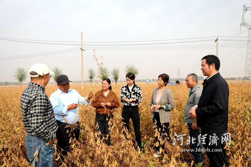 河北省农林科学院大豆中心专家、藁城区农业技术推广中心技术人员与种植户一起沟通大豆管理模式。河北经济日报记者 李佳琦 摄