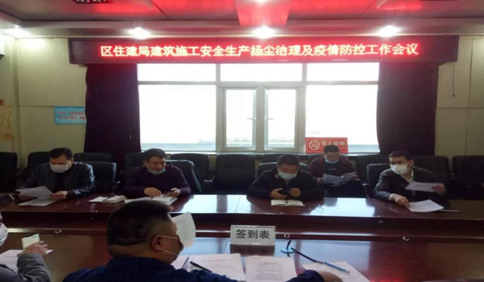 一是健全组织领导,强化宣传发动。为确保工程项目有效管控,区住建局成立了以徐雪海局长为组长的疫情防控领导小组,召开了建筑工地安全生产、扬尘治理及疫情防控工作会议。及时下发了《关于加强建筑工地防疫管理措施》、《关于做好新型冠状病毒感染肺炎疫情防控期间建筑工地开(复)工工作的通知》、《2020年建筑施工安全生产专项整治方案的通知》、《河北省扬尘污染防治办法》等文件,共发放《建筑工地新型冠状病毒肺炎防控知识手册》125份,发放《食堂、宿舍疫情防控“三字经”》宣传手册245份。