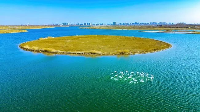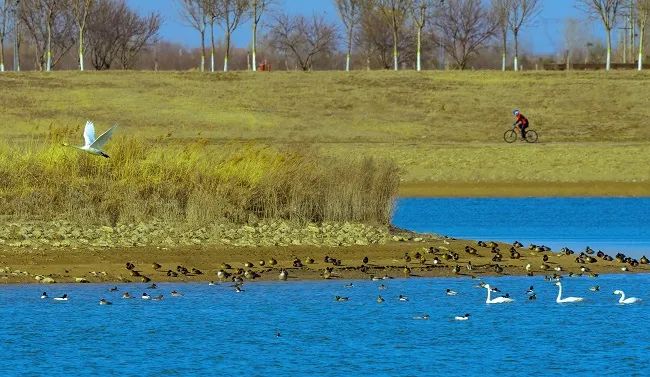 初春时节,在滹沱河藁城段,小天鹅、白鹭、水鸭等水鸟又陆续回到这里,它们或在水面觅食嬉戏或在河畔小憩,时而高空振翅,时而低空盘旋与碧水蓝天构成了一道灵动的生态画卷。
