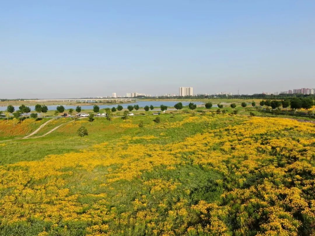 初夏时节,鲜花怒放。在滹沱河畔大片金鸡菊花海绚丽绽放,宛如一片金色的海洋,吸引了众多市民和游客前来赏花打卡,享受初夏独有的浪漫。
