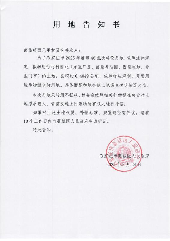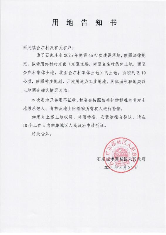 石家庄市2025年度第46批次用地告知书